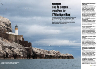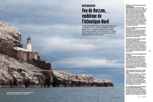 Passionné par les fous de Bassan (et par les sulidés en général), Christian Mariavelle a effectué une dizaine de voyages en Bretagne, en Écosse, en Islande ou au Québec pour le simple plaisir de photographier les colonies.